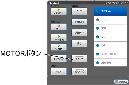 ショートカットメニューの[MOTOR]ボタンを押します。