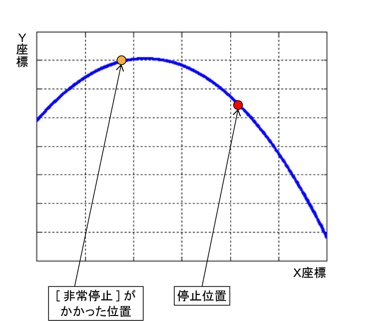 全軸が同期して、同時に停止します。予定していた軌道上に停止します。