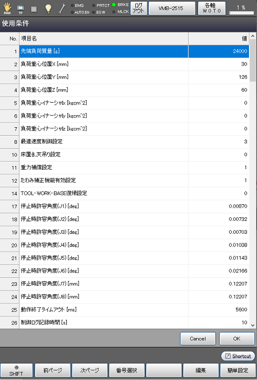 ロボットを動かす上での様々な使用条件の設定を行います。