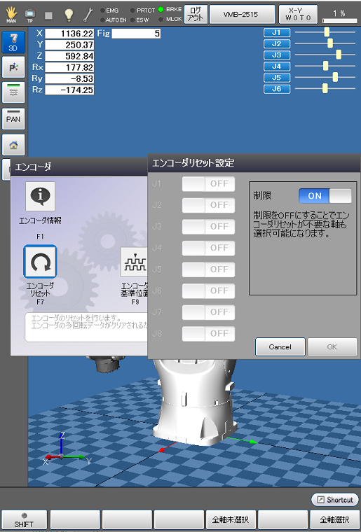 | 制限 | 制限をOFFにすることでエンコーダリセットが不要な軸も選択可能になります。 |