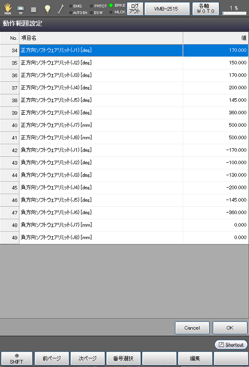 操作経路 : [F2 アーム] - [F12 保守] - [F8 動作範囲]
