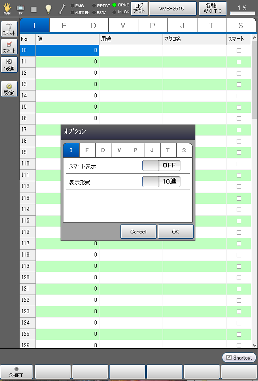操作経路 : [F3 変数] - [F10 表示切替]