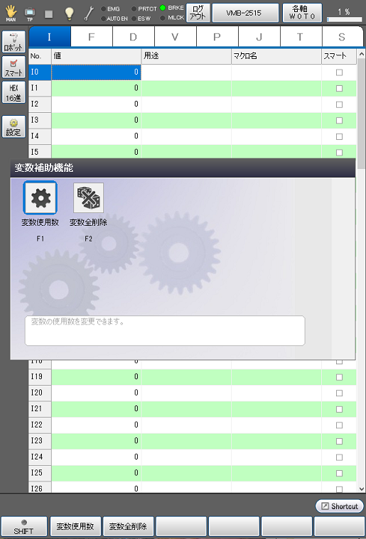 [F12 補助機能]を押すと、次のような[変数補助機能]ウィンドウが表示されます。