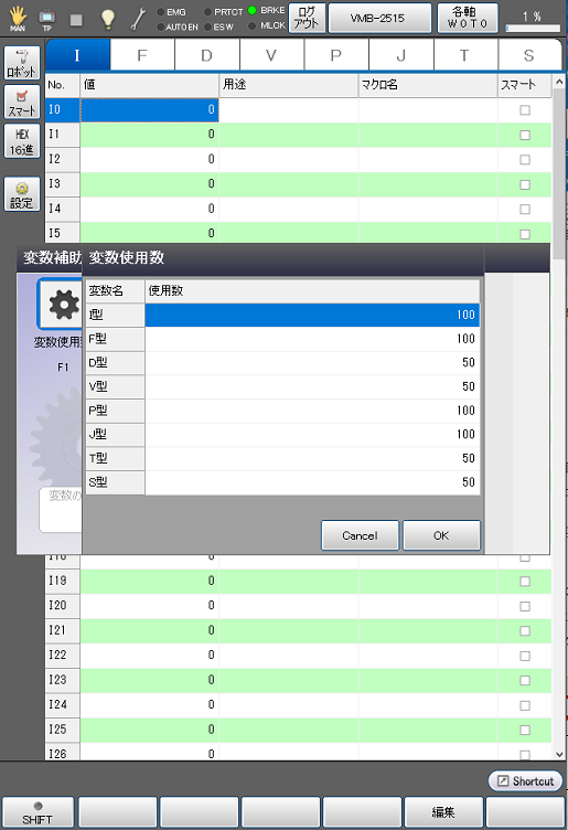 操作経路 : [F3 変数] - [F12 補助機能] - [F1 変数使用数]