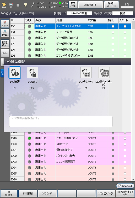 | [F1 I/O情報] | I/O情報を表示します。 |
