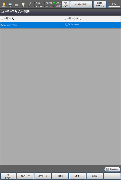 操作経路 : [F6 設定] - [F1 ユーザーアカウント管理] - [F4 変更]