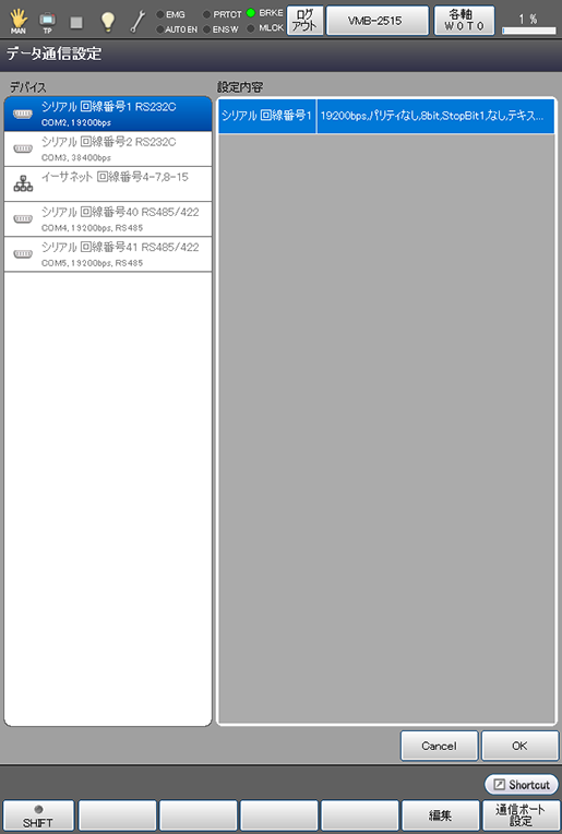 - データ通信編集画面の表示と変更(COM選択時)