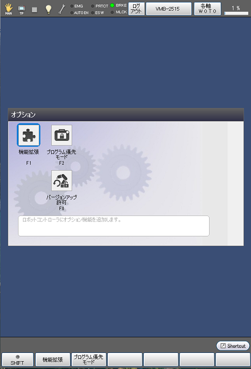 | [F1 機能拡張] | コントローラにオプション機能を追加します。 |