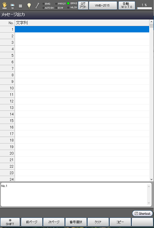 [F11 メッセージ出力]を押すと、次のような[メッセージ出力]ウィンドウが表示されます。