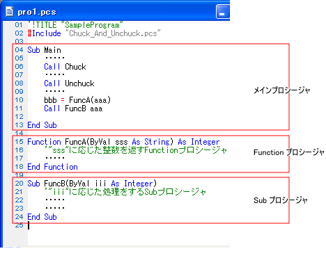 プロシージャ名はひとつのタスク内でSubプロシージャ/Functionプロシージャに関わらず、ユニークでなければなりません。#Includeでプログラムファイルを読み込んだ場合もすべてのプロシージャ名がユニークでなければなりません。
