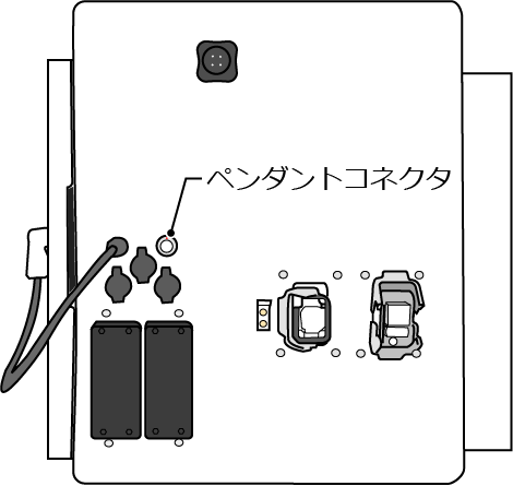 ミニペンダントは、下図に示すようにロボットコントローラ側面のペンダントコネクタに接続してください。
