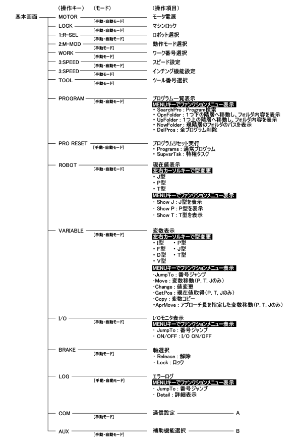 操作メニューツリー