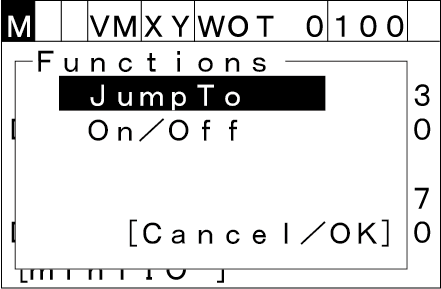 上下カーソルキーで [JumpTo] を選択し、[OK]を押すと、任意のI/O番号に移動します。