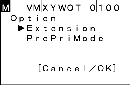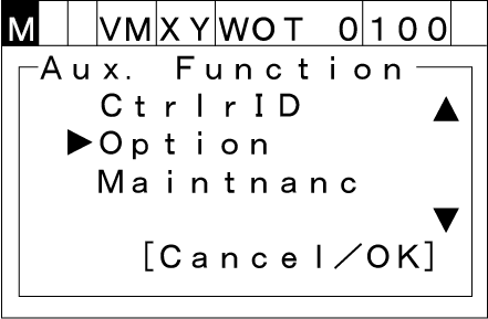 上下カーソルキーで、[Option] を選択し[OK]を押します。