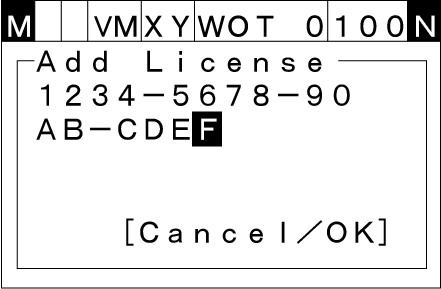 上下カーソルキーで、[Add] を選択し[OK]を押すと、次のような [ライセンス追加画面] が表示されます。