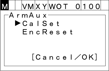 上下カーソルキーで、[ArmAux] を選択し、[OK]を押します。