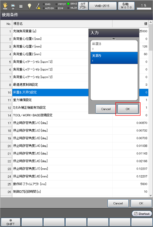 ロボット設置条件の設定