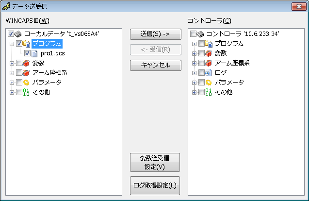 WINCAPSIIIによるデータ転送