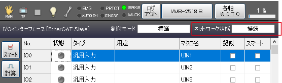 [ON]されたI/O番号の[状態]が緑色に変わりました。
