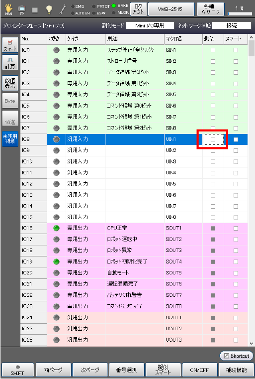 | [スマート] | [スマート]のチェックボックス欄にチェックを入れたI/O番号のみを表示します。 |