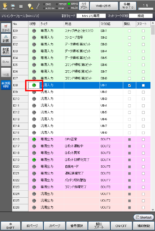 擬似的にI/O入力を設定すると、該当するポートをスマートTPにてON/OFFの切り替えができます。