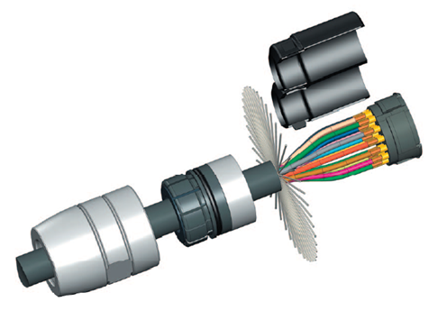 ケーブルクランプは多様なケーブルの太さに対応可能にするため、クランプがオニオンリング状になっています。