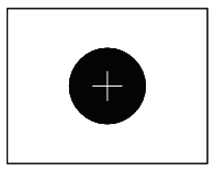 視覚プログラムでは円の重心位置を求めます。重心位置にロボットのツール位置を合わせ易いように重心位置に十字を記したマーク(下図参考)を用意してください。