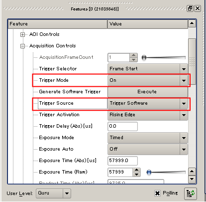 「Feature」の中の「Acquisition Controls」を選択し、+をクリックしてメニューを開きます。