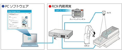 RC9では接続したカメラを用いて、画像処理アプリケーションを使用することができます。使用可能なアプリケーションは"EVP2"および"EIS"です。