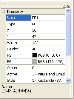 部品の位置やサイズ等、コントロールの属性を指定します。表示される項目は部品(コントロール)の種類によって異なります。