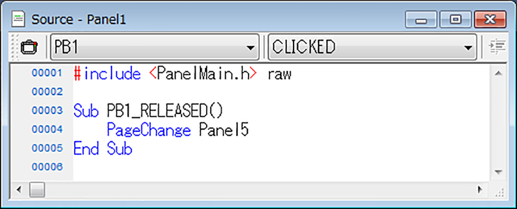 操作盤切替えはPageChangeステートメントで行います。