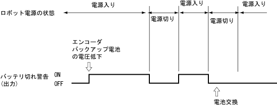 エンコーダバックアップ電池の電圧が低下したときに出力します。