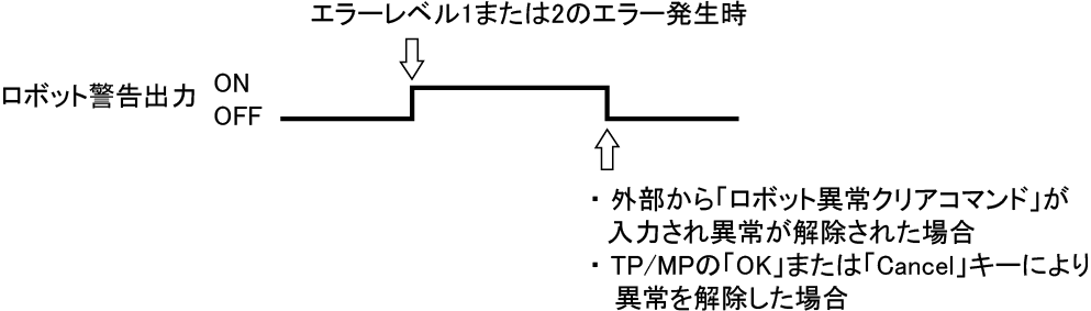- 外部から「ロボット異常クリアコマンド」が入力され、異常が解除された場合。