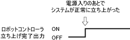 コントローラの立ち上げ完了時点でONになります。 ロボット初期化完了信号と異なり、エラーが発生してもOFFしません。