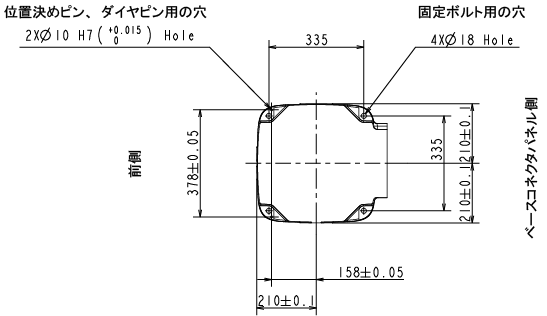 下図を参考に固定ボルト用のタップおよび、位置決めピン、ダイヤピン用の穴を架台に用意してください。