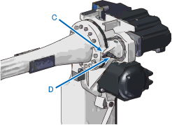 スマートTPを用いて、ロボット軸をCALSET位置に移動し、ノッチ(C)とノッチ(D)を近づけます。
