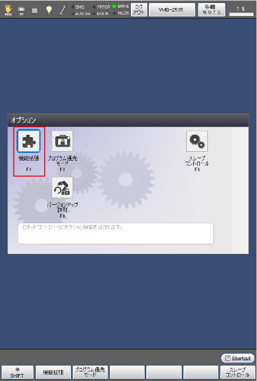 操作経路 : 基本画面 - [F6 設定] - [F8 オプション] - [F1 機能拡張]