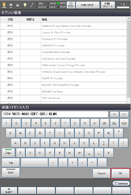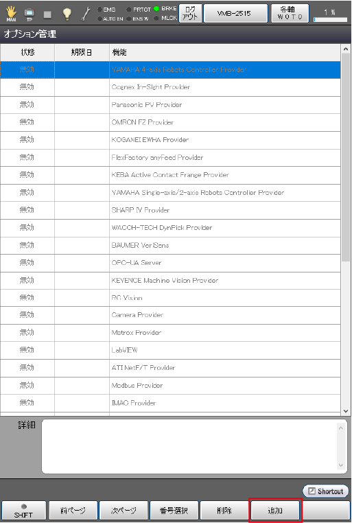- ライセンスの登録、削除は、ロボットコントロ―ラのログインレベルとは関係なく実施できます。