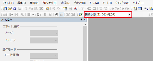 WINCAPSIIIとロボットコントローラを接続し、オンライン(モニタ)モードにします。
