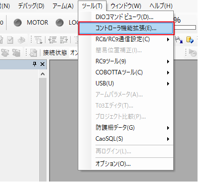 ツールメニューの[コントローラ機能拡張]をクリックします。