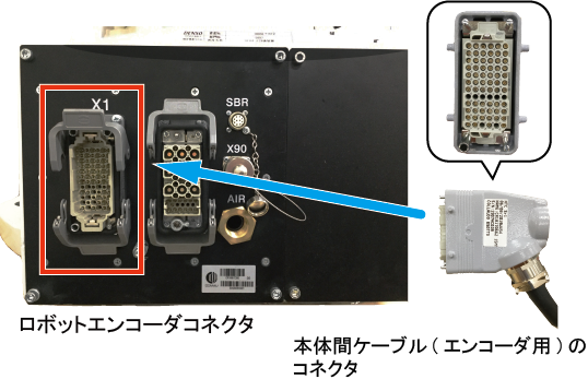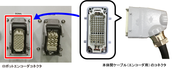 本体間ケーブル(エンコーダ用)のコネクタとロボットエンコーダコネクタの左右の向きを合わせます。