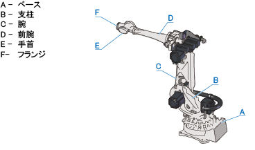 VLAシリーズロボットの各部の名称と動作方向を下図に示します。
