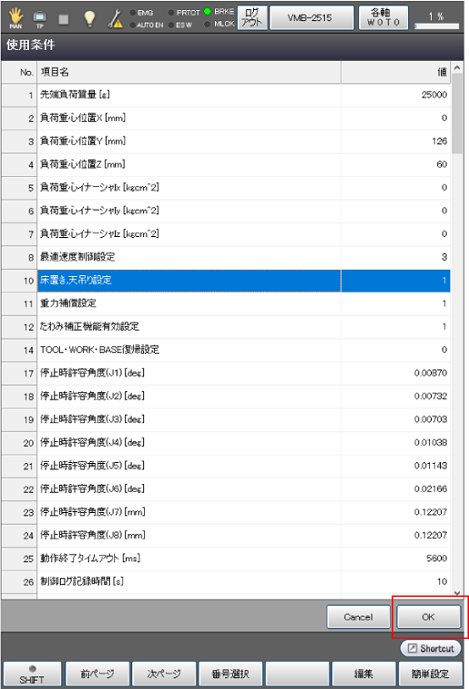 [使用条件]画面で値が変更されているのを確認し、[OK]を押します。