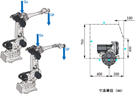 フランジにかかる負荷QFの他に、ロボットの前腕にも、追加の負荷QSを加えることができます。
