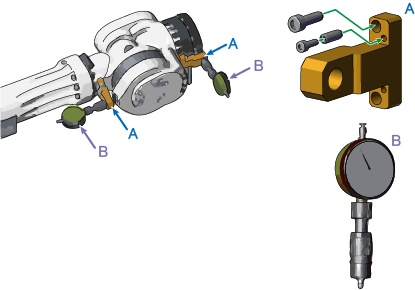 ダイヤルゲージを使用すると、各ロボット軸のCALSETをより正確に実行することができます。