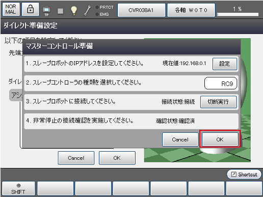[OK]を押すと、スレーブロボットとの接続が完了します。