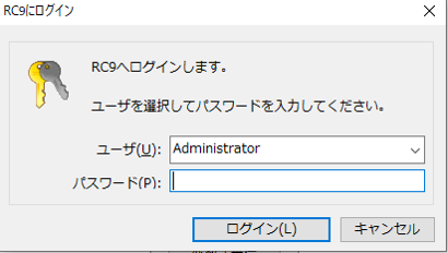 ログインのためのユーザとパスワードが求められます。初期アカウントの"Administrator"を選択し、パスワードに"1234"を入力し、[ログイン]ボタンをクリックします。