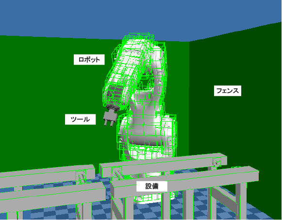 パラメータで組合せを選択できます。- ロボットと設備 (フェンス含む)