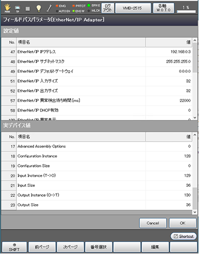 基本画面-[F4 I/O]-[F6 補助機能]-[F4 フィールドバスパラメータ]