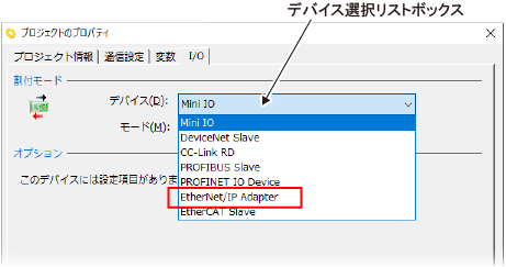 [デバイス選択リストボックス]から"EtherNet/IP Adapter"を選択してください。